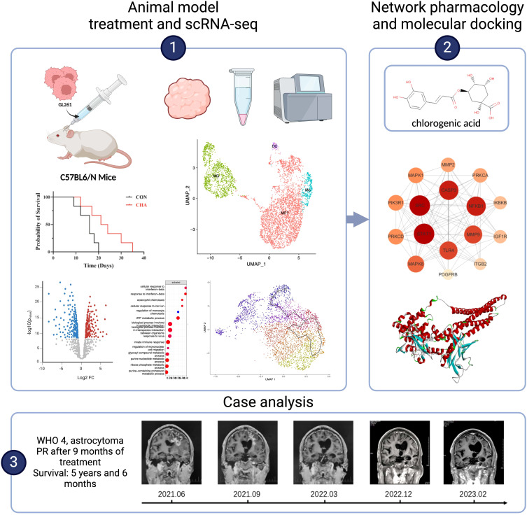 這篇論文研究了研究綠原酸(Chlorogenic Acid, CHA)對膠質(zhì)瘤(Glioma)免疫微環(huán)境的調(diào)節(jié)作用,以及其在小鼠模型和臨床實(shí)踐中的潛在應(yīng)用。研究通過單細(xì)胞RNA測序(scRNA-seq)揭示了膠質(zhì)瘤相關(guān)巨噬細(xì)胞(Tumor-Associated Macrophages, TAMs)的亞群和功能特征,并探討了CHA對免疫微環(huán)境的調(diào)節(jié)作用及其臨床應(yīng)用潛力。