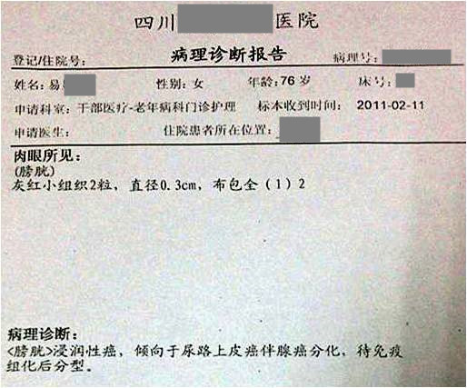 用藥前患者病理診斷報(bào)告為膀胱浸潤(rùn)性癌。單獨(dú)使用注射用綠原酸4個(gè)月,患者彩超診斷報(bào)告顯示,病灶消失。持續(xù)用藥,白細(xì)胞和紅細(xì)胞均由異?;謴?fù),隨后維持正常,未見復(fù)發(fā)和轉(zhuǎn)移跡象。用藥期間顯著改善膀胱癌術(shù)后的頑固性血尿,且患者生活質(zhì)量得到明顯改善。